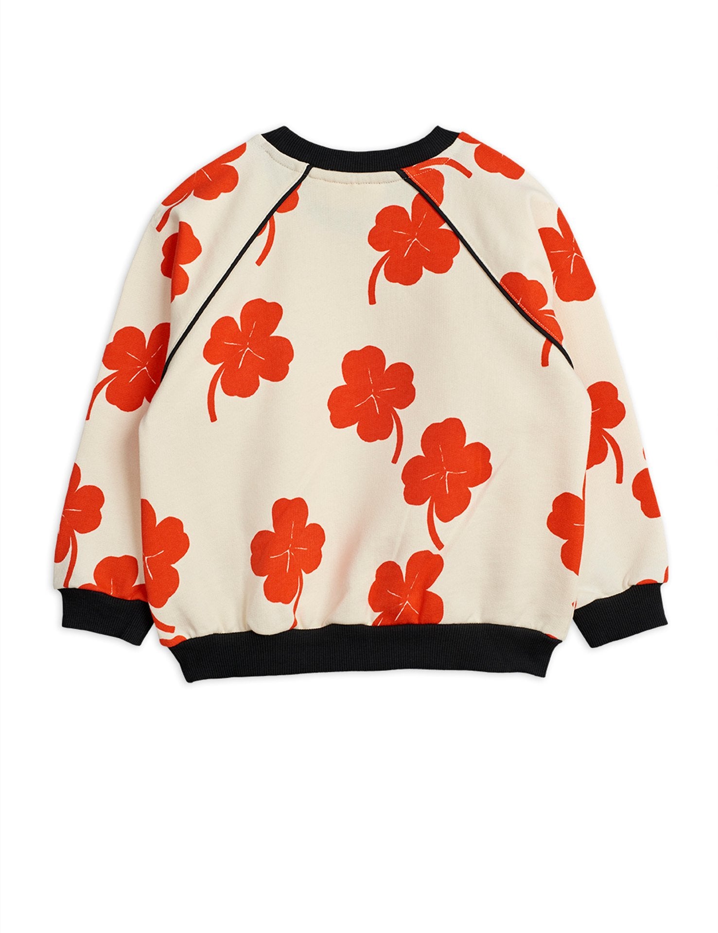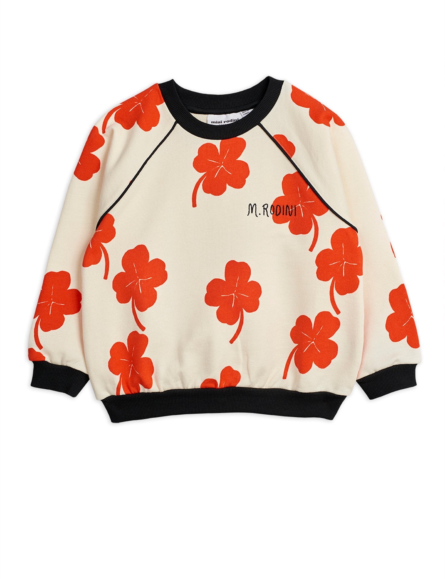 Soft organic cotton shapes this comfy off-white sweatshirt with printed clovers. It features raglan sleeves with piping details and ribbed trims at neck, shoulders and hem.