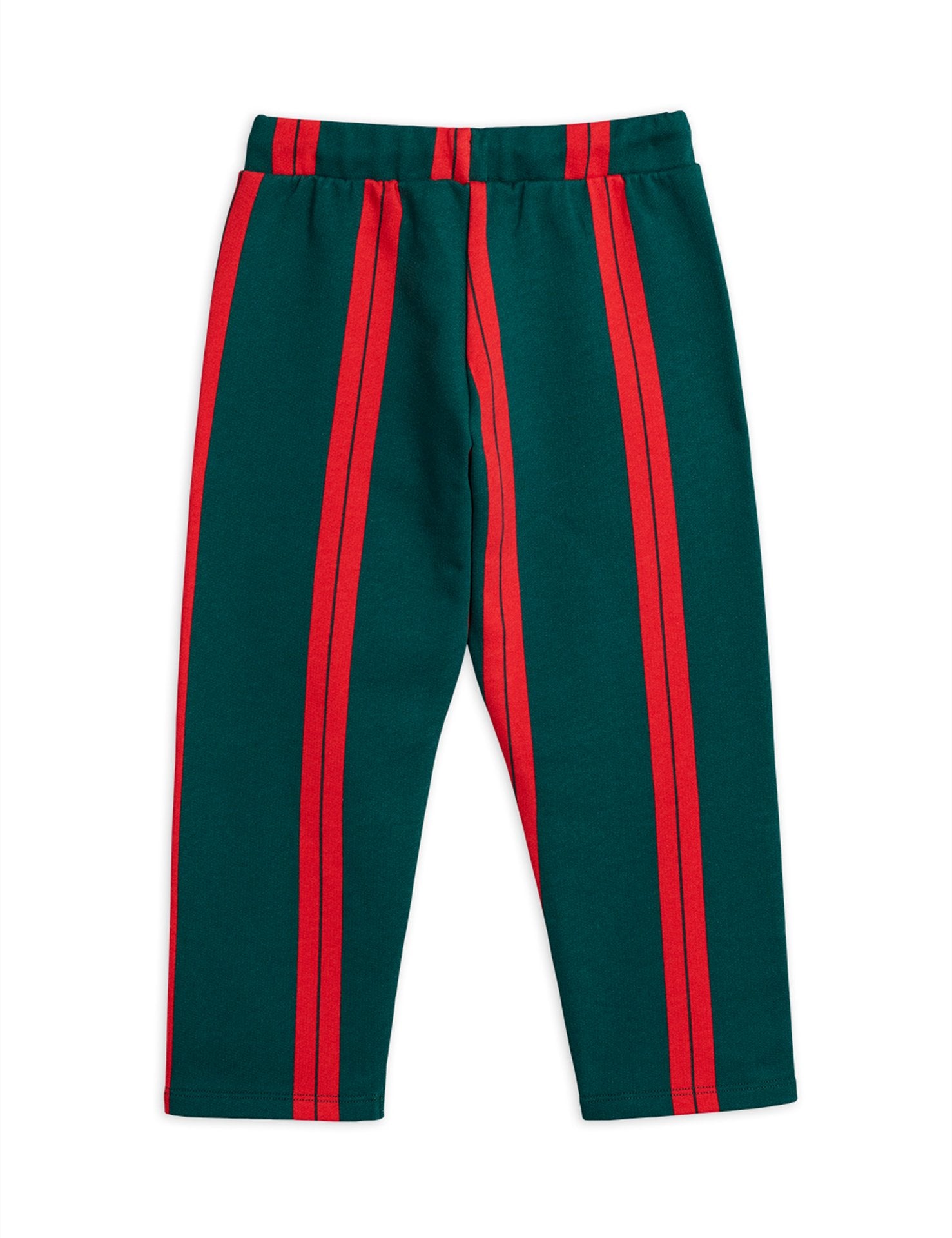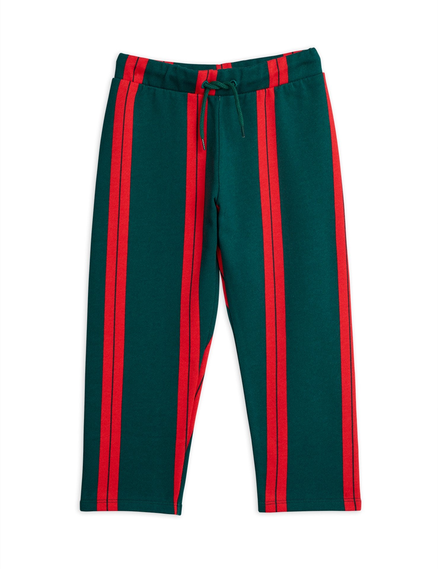 Red stripes deliver a bold expression to these green sweatpants in soft organic cotton. They are styled for a straight fit and feature an elasticated waistband with a drawstring. If you're in between sizes, we recommend you to choose the smaller size for a better fit.