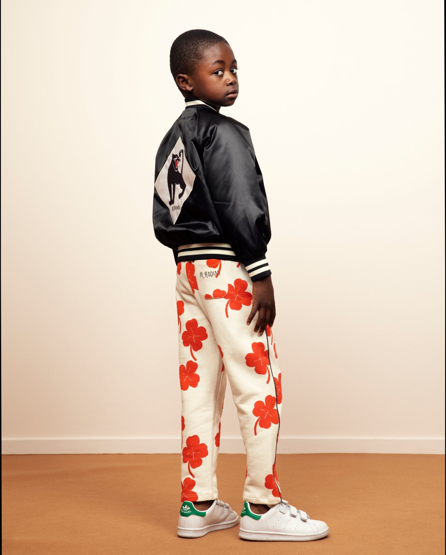 Organic cotton in a sweatshirt quality delivers a soft feel to these clover-printed sweatpants with an elastic waist and piping details along the tapered legs. A single back pocket with a Mini Rodini embroidery completes the look. If you're in between sizes, we recommend you to choose the smaller size for a better fit.