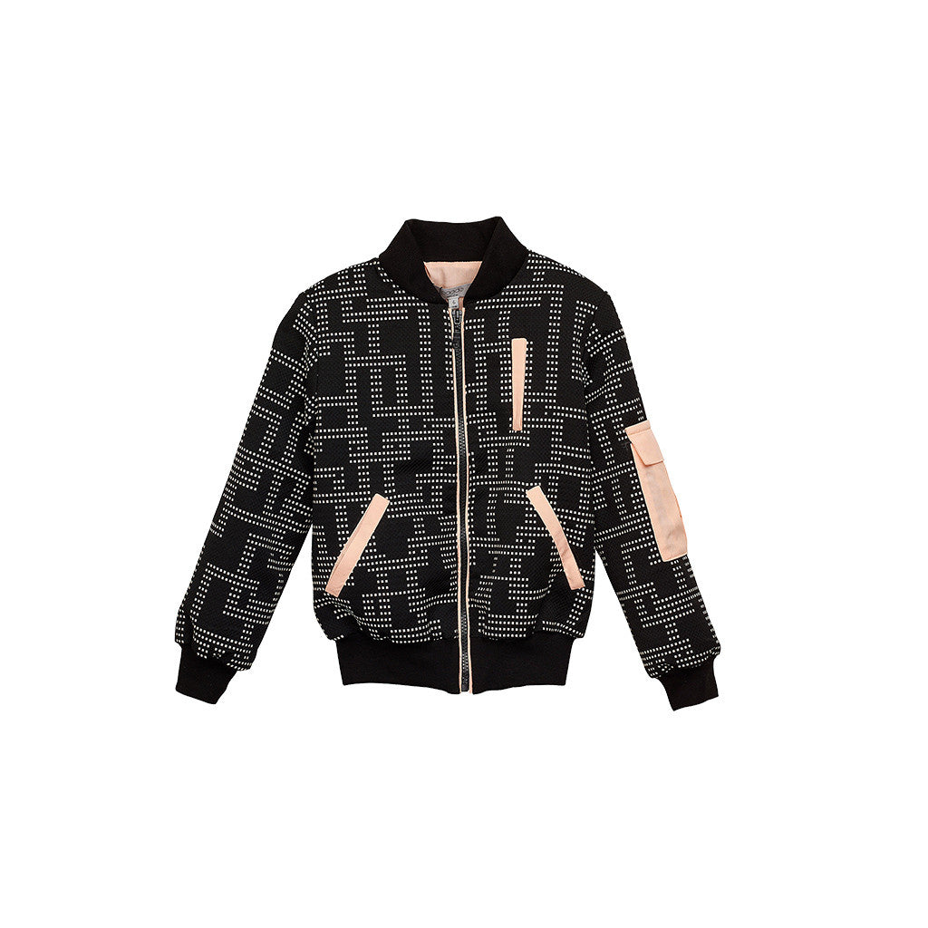 Jaquard bomber jacket with viscose pocket details and lining. Contrasting colours for the bold and adventerous. Suitable for both boys and girls.