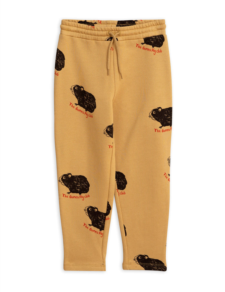 Styled from GOTS certified organic cotton with printed guinea pigs, these beige sweatpants features a soft elastic waistband with a drawstring for adjustable fit, and tapered legs.