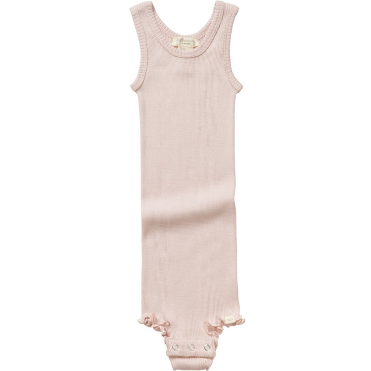 Soft strap-body in seamless silk-cotton mix. The leg-opening is with frills for added stretch and a more girly look.