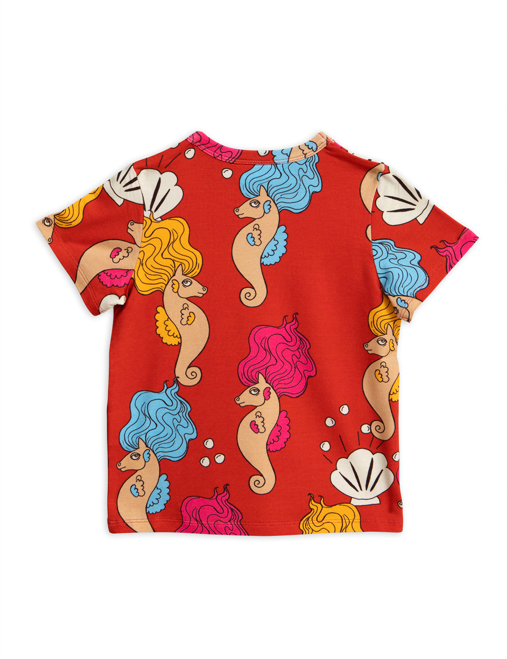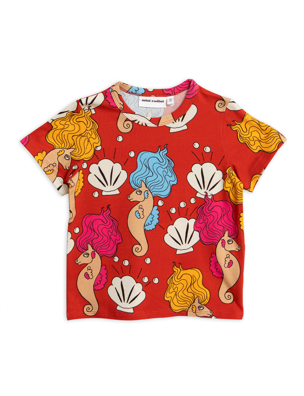 This red t-shirt is crafted from TENCEL Modal with added stretch for a smooth feel and comfort. Printed with colourful seahorses, it has a straight fit and a neat finish.