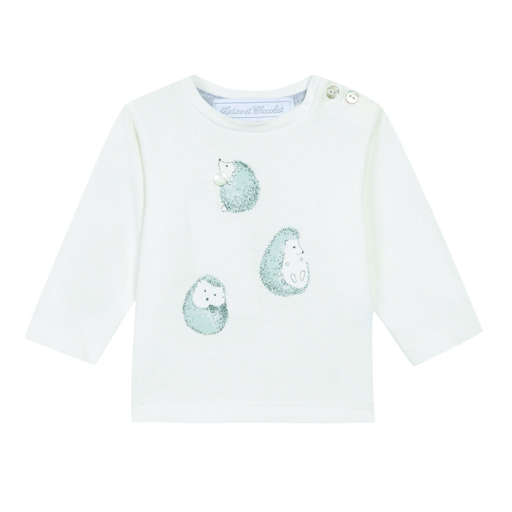 Made in amazingly??soft cotton jersey, this ivory top is comfort itself and has adorable hedgehogs on the front, just right for dressing your little one. Side vents give extra room for manoeuvre and poppers on one shoulder make dressing easy.??